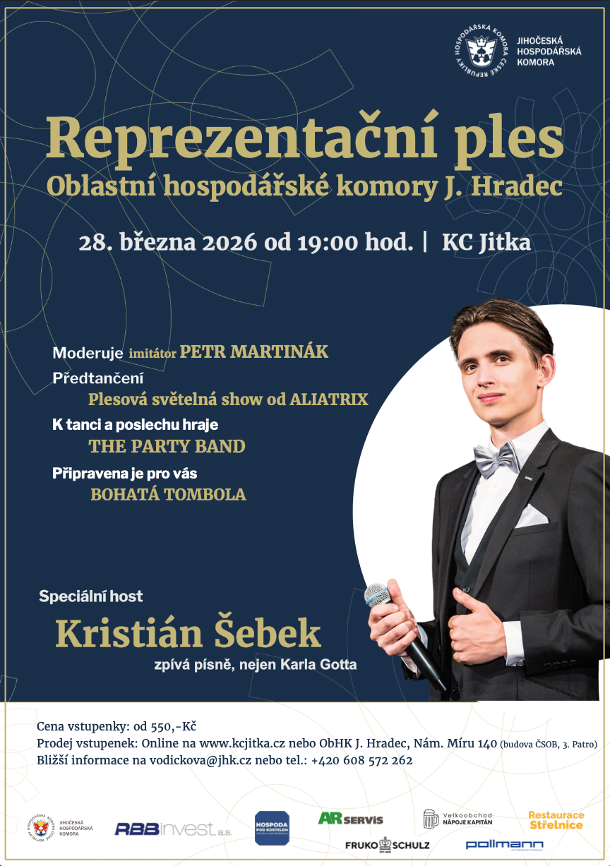 Zveme vás na slavnostní Reprezentační ples Hospodářské komory, večer plný elegance, hudby a výjimečné atmosféry v Kulturním centru Jitka.