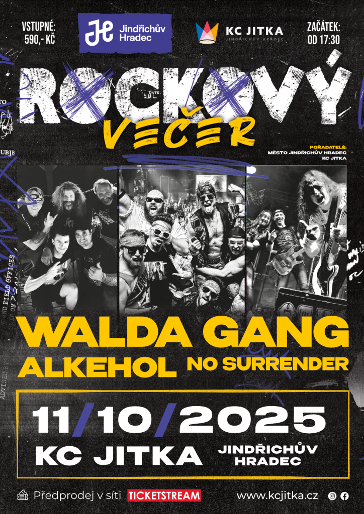 Město Jindřichův Hradec a Kulturní centrum Jitka Vás zvou na skvělý Rockový večer!